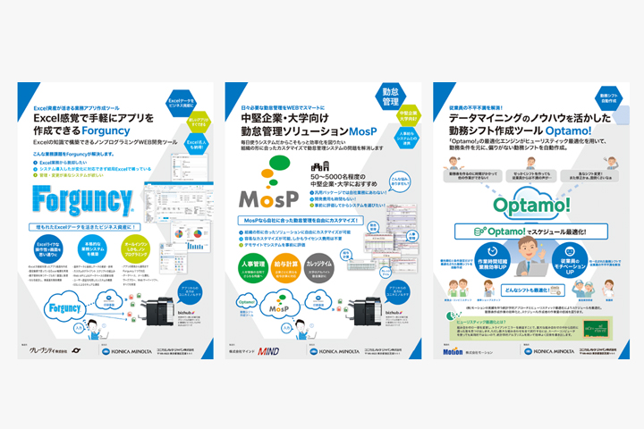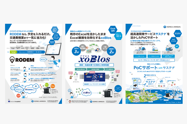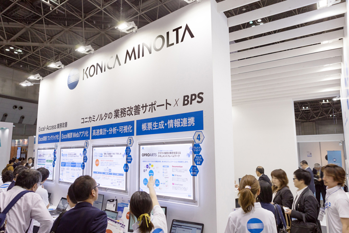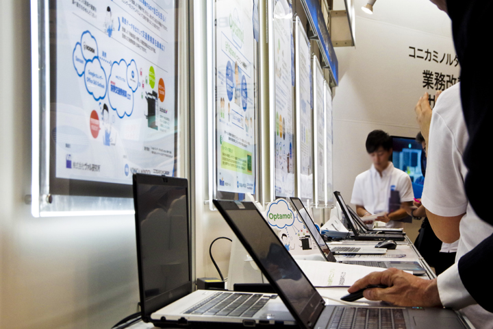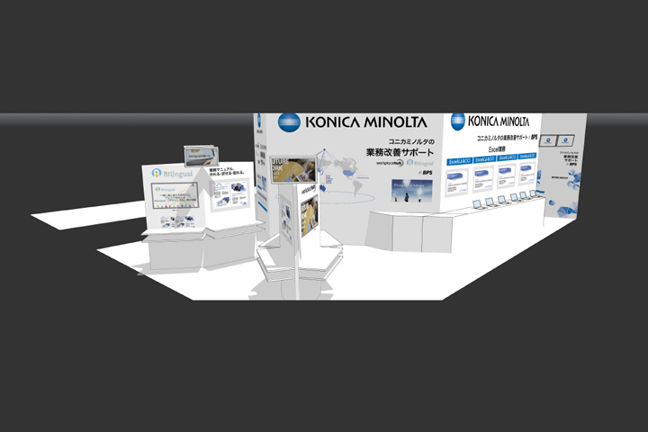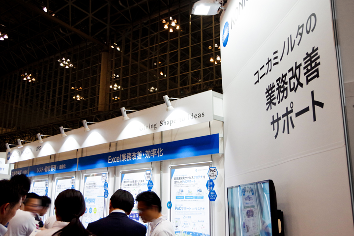 ビジãƒã‚¹ã‚’サãƒãƒ¼ãƒˆã™ã‚‹ITツールã®ãƒ—レゼンテーションを目的ã¨ã—ãŸå±•ç¤ºãƒ–ãƒ¼ã‚¹ã€‚é›†å®¢ã«æˆåŠŸã—ãŸãƒ–ースã¨ãªã£ãŸã€‚車や建æã¨ã„ã£ãŸå±•示å¯èƒ½ãªã‚‚ã®ã§ã¯ãªãã€è¤‡æ•°ã®ã€Œã‚¢ãƒ—リã€ã¨ã„ã†ç›®ã«è¦‹ãˆãªã„ソリューションツールã«ã„ã‹ã«é–¢å¿ƒã‚’æŒã£ã¦ã‚‚らã†ã‹ã¨ã„ã†ã“ã¨ãŒæœ€å¤§ã®èª²é¡Œã§ã‚ã£ãŸã€‚グラフィック(2D)ã§è¦‹å‡ºã—や罫線ã§è¦–線を誘導ã™ã‚‹ã‚ˆã†ã«ã€ä¼šå ´ã®é€šè·¯ã‹ã‚‰ã€ä¸»å‚¬è€…æƒ…å ±ã ã‘ã§ãªã何ãŒãƒ—レゼンテーションã•れã¦ã„ã‚‹ã®ã‹ã€ã‚«ãƒ†ã‚´ãƒªã‚„テーマã¯ãªã«ãªã®ã‹ãŒã™ãã«ã‚ャッãƒã§ãるよã†ã«å¯èªæ€§ã®é«˜ã„見出ã—ã®ãƒœãƒ¼ãƒ‰ã‚’掲ã’ã‚‹ãªã©ã—ãŸã€‚心ç†çš„ãªãƒãƒªã‚¢ã«ãªã£ã¦ã„ãŸå±•示ブースã«å…¥ã‚‹ã¨ã„ã†ã‚¢ã‚¯ã‚·ãƒ§ãƒ³ã‚’ã¨ã‚Šã¯ã‚‰ã†ãŸã‚ã€å±•示パãƒãƒ«ã‚’ã§ãã‚‹é™ã‚Šé€šè·¯ã«å¯„ã›ãŸã€‚çµæžœã¨ã—ã¦ã€ãれãžã‚Œã®é¡§å®¢ãŒè‡ªèº«ã«é–¢ä¿‚ã®ã‚るパãƒãƒ«å‰ã«é•·ã„列をã¤ãã‚‹ã“ã¨ã¨ãªã£ãŸã€‚