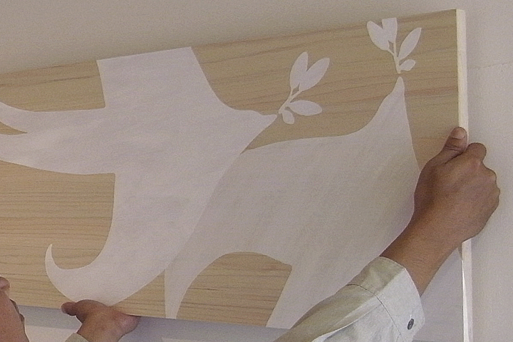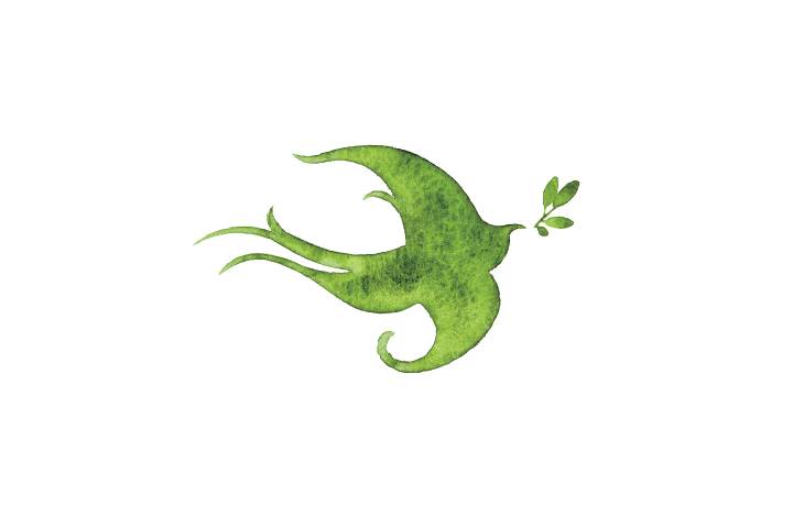 「風の鳥 windy bird」はコンパスで作図して,水彩で縁取ることで自然素材を大切にする工務店のあたたかい雰囲気を加えた