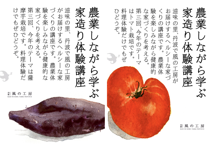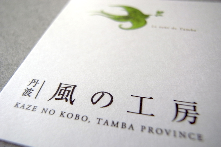 ロゴは木版で削り出したニュアンスを加えて,「風の工房」というネーミングをアイコン化したシンボルマーク